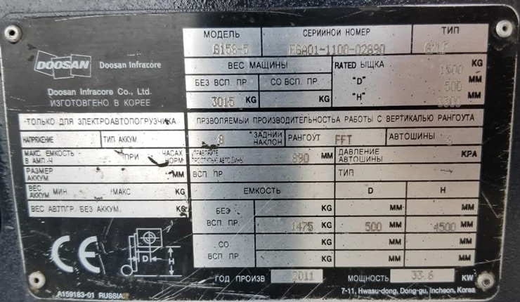 Вилочный погрузчик и складская техника Doosan → Каталог → Погрузчики БУ → Газ-Бензиновый погрузчик G15S-5 Doosan