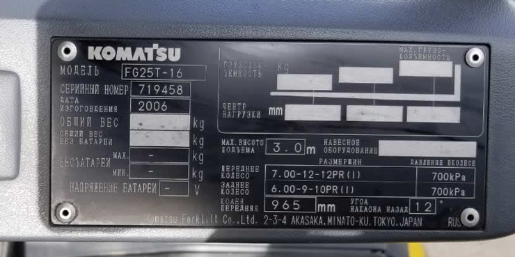 Вилочный погрузчик и складская техника Doosan → Каталог → Погрузчики БУ → Газ-Бензиновый погрузчик FG25T-16 Komatsu