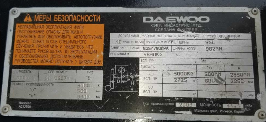 Вилочный погрузчик и складская техника Doosan → Каталог → Погрузчики БУ → Дизельный погрузчик D30S-3 Daewoo-Doosan